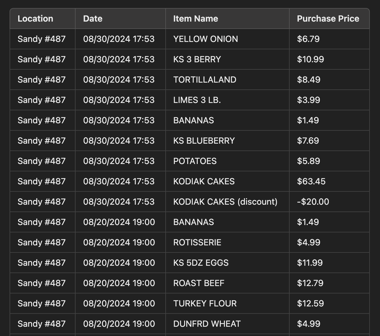 Two weeks ago while looking through my budgeting app with Han I commented that I wished I knew what we bought at Costco. We use Copilot for budgeting, which we like, but it can’t itemize the products in a transaction.